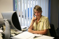 Frau Katrin Balzer arbeitet in der Annahme des Autohauses.